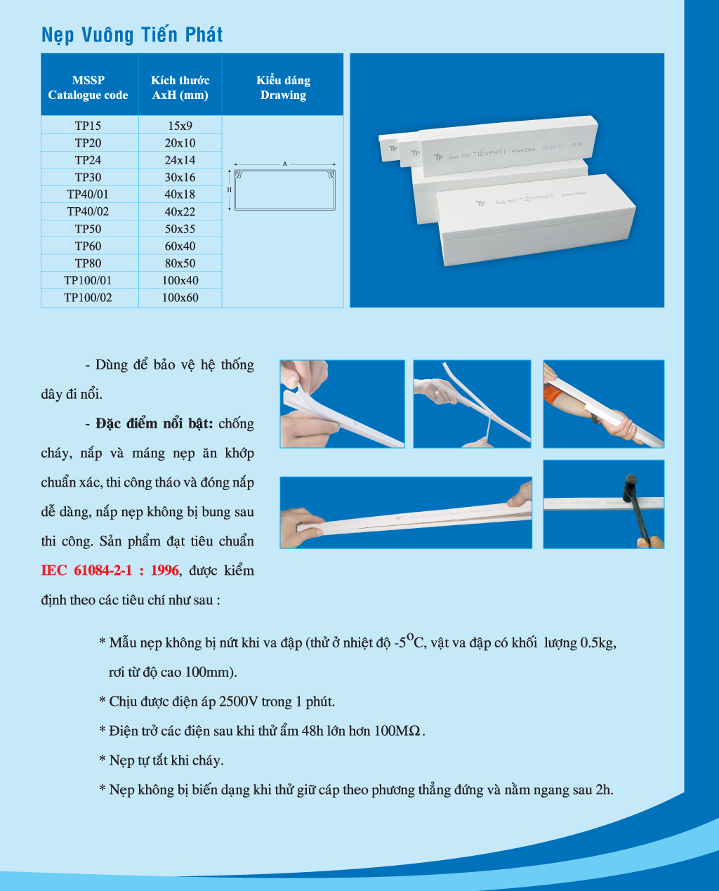Nẹp màu trắng sữa, bề mặt trơn láng. Nắp và máng nẹp ăn khớp chắc chắn với nhau.